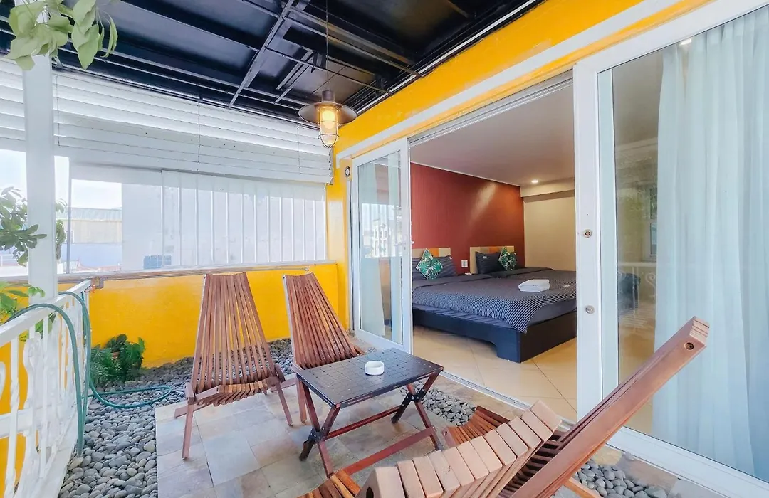 Staying at Viethome- The Rooftop W Garden - 4 Guests - Lift apartment, guests have access to a balcony equipped with an air conditioner. Visitors will enjoy the comfort of a bathroom with hair dryers and bath sheets in this accommodation.